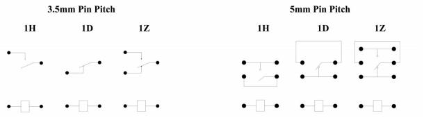 Recurso de contato | Forma | 1z (SPDT), 1H (SPST-NO), 1D (SPST-NC) | 2Z (DPDT), 2H (DPST-NO), 2D (DPST-NC) | ||||