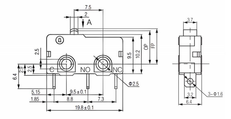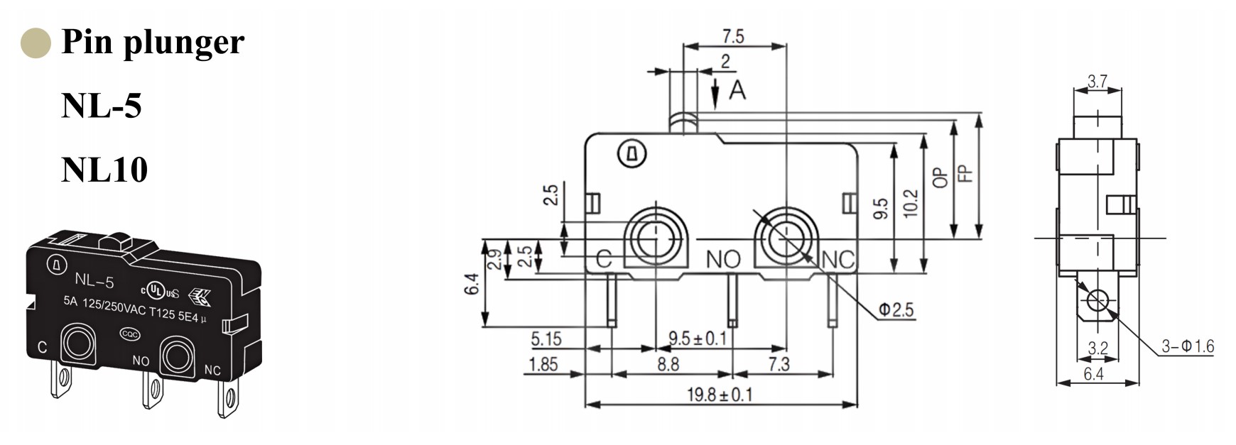 Apesar de seus recursos robustos, o micro switch NL-5 mantém um tamanho compacto.Este design compacto permite fácil integração em vários dispositivos e sistemas eletrônicos com espaço limitado.É amplamente utilizado em eletrônicos de consumo, sistemas automotivos, eletrodomésticos e muito mais.