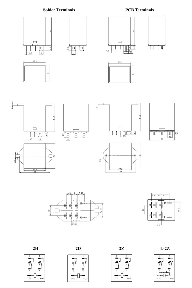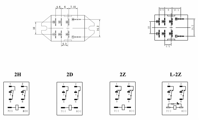 Recurso de contato | Forma | 2Z(DPDT);2H(DPST-NO);2D(DPST-NC) |